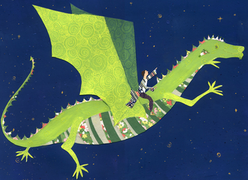 Illustrate a rhyme about a boy who dreamt he drove a dragon.